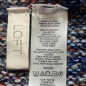 LOFT INFINITY SWEATER KNIT SCARF BLUE PINK CONFETTI METALLIC COLOR.
