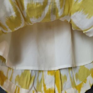 ANN TAYLOR LOFT "Islander" ikat print skirt in off white and mustard yellow.