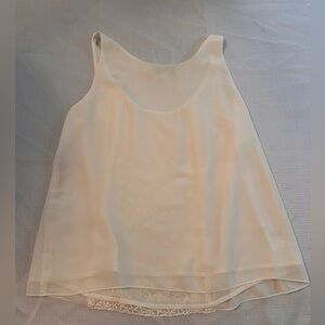This cream blouse from LOFT features a delicate lace panel down the center, adding a touch of elegance to its boxy silhouette. The sleeveless design and lightweight fabric make it perfect for a relaxed yet stylish look. Ideal for both casual and dressy occasions, this top effortlessly combines comfort and sophistication.