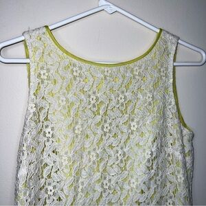 LOFT Ivory and Bright Yellow Lace Ruffle Hem Dress Size 4