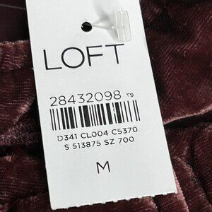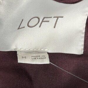 LOFT Jacket Womens Medium Burgundy Velvet Utility Button Front Pockets Long Sleeve
