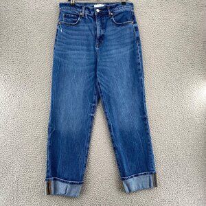 LOFT Jeans Womens 28 Blue Straight Cuffed Medium Wash Denim Distressed Stretch