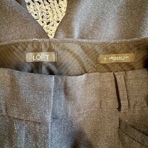 Ann Taylor LOFT's Julie trouser pants are mid-rise, curvier through the hip and thigh with a leg that's not too slim or too wide. It gathers a little bit more in the waist so you don't have the dreaded gap at the top of your pants. What was formerly known as 'Julie' is now called Curvy Fit. Trouser style is a high waisted wide leg relaxed fit pant with a bit of flare that lengthens legs. The perfect professional polished work pants.