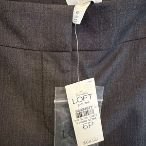 These LOFT pants are a women's size 6 Petite (Julie/Curvy cut) and are NWT and never worn. Label describes as "sits slightly below the waist; flatters the hip & thigh; flare leg with stretch". They are navy, but not solid. Please refer to close-up photos.