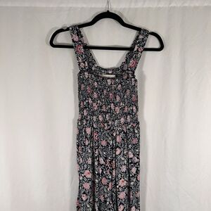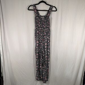 LOFT Jumpsuit Women's XS Black Pink Floral Sleeveless Smocked Top Lightweight