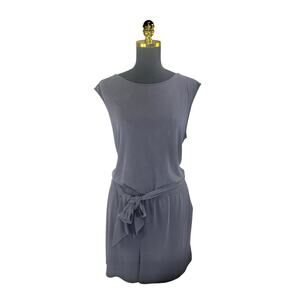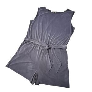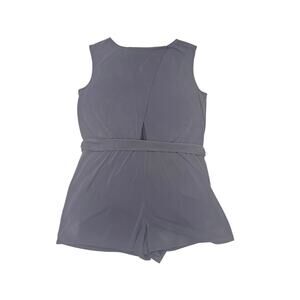 Stay stylish and cool in this grey-blue LOFT romper, size XL. Made from a soft and breathable 65% Modal and 35% Polyester blend, this romper features a keyhole back, a crossover snap front, and a flattering matching wrap belt. With a 3.5" inseam, 14" rise, and sleeveless cut, it's