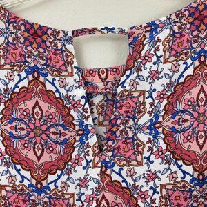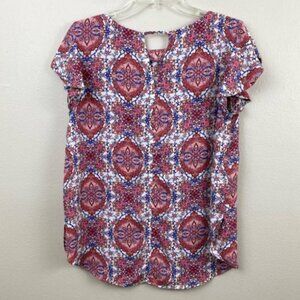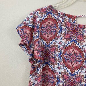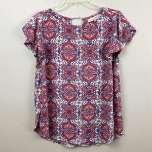 Fun patterned short sleeve top from LOFT. Unique pattern with flutter sleeves and keyhole back.