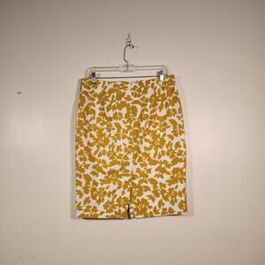 ITEM: LOFT Knee Length Skirt Womens 8 Mustard Yellow White Floral Pencil Lined Office