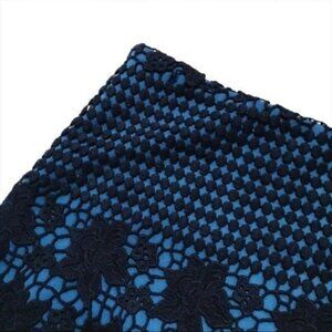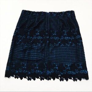 LOFT Knit A-Line Skirt Blue With Black Floral Overlay Size 6