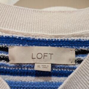 LOFT Knit Striped Tank Top in Blue and White (Size XL)
