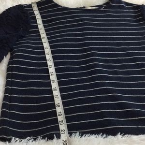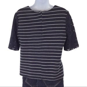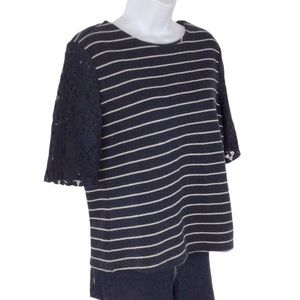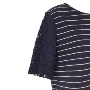 LOFT Knit Striped Top with Lace Sleeves Sz S