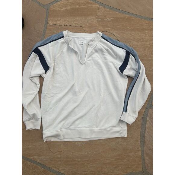 LOFT LOU & GREY Sweatshirt Blue Sleeve Stripes Cozy Casual Comfy SM LS