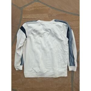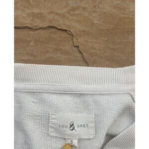 This Lou & Grey sweatshirt is perfect for any casual occasion. The ivory color and classic striped pattern make it a versatile addition to your wardrobe. The sweatshirt features a crew neck and long sleeves with sleeve stripes. It has a relaxed fit and is made of a comfortable blend of polyester and cotton.