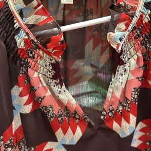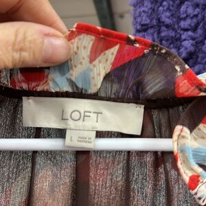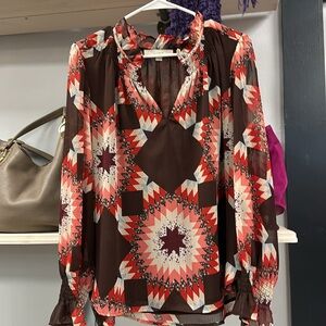 LOFT L/S Chiffon 'Garden Smocked Ruffle Blouse' - Large Brown Coral