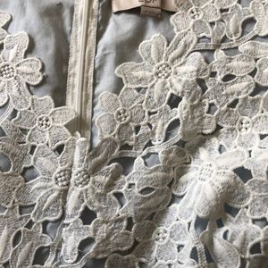 Beautiful Loft Dress in White Lace and Pale Blue Lining. Never Worn. Mint Condition. Size 10P. White Zipper up Back, Mid Thigh Length, Fully Lined.