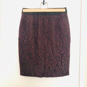 LOFT Lace Shell Knee Length Skirt in Burgundy