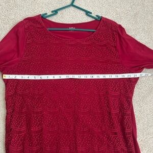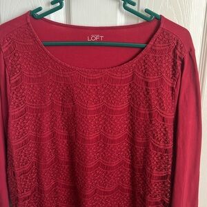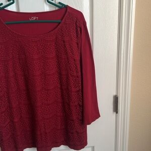 LOFT Lace Top Blouse 3/4 Sleeve Cranberry Red Elegant Party Casual Size XL