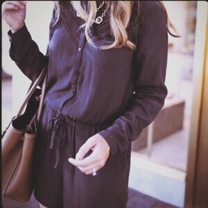 LOFT Lacey Long Sleeve Drawstring Romper NWT