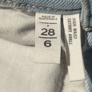 LOFT Ladies Size 28P Light Wash Distressed High Waist Raw Hem Skinny Ankle Jeans