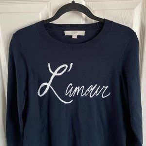 LOFT L’amour Navy Crew Neck Sweater, Sz Medium