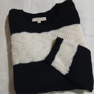LOFT Large Crew Neck Tunic Sweater Black/White WIDE Striped Cotton/Wool/Acrylic