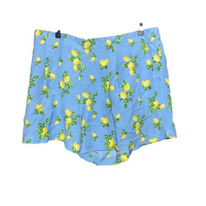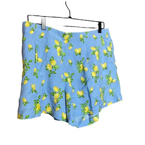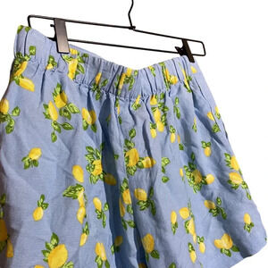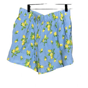 LOFT Lemon Print Pull On Shorts Blue Linen Elastic Waist Size Large with pockets