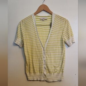 Chic knitwear with lemon yellow and white stripes. Ideal for layering in summer and for the office.