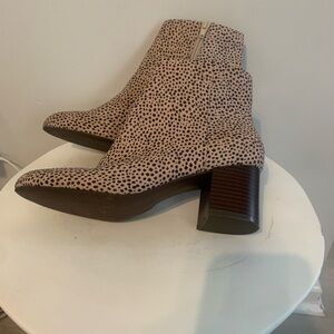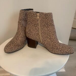 LOFT Leopard Print Beige-Black Ankle Booties sized 8 zipper animal tan brown