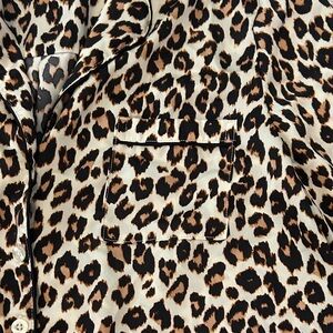 Chic leopard print pajamas. Soft fabric for ultimate comfort. Ideal for lounging or sleeping.