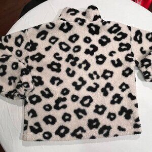 LOFT Leopard Print Sherpa Fleece Pullover Plush Cozy Snap Collar Top Medium