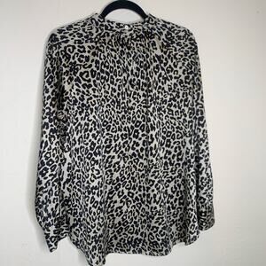 LOFT Leopard Print Silky Blouse Sz Large Petite