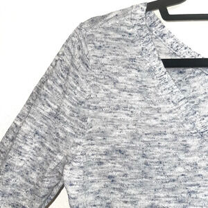 LOFT light blue space-dye fitted lightweight sweater. In excellent condition! V neckline. Long sleeves. V back. Open stitch down the back. Slightly fitted style. Light blue with hints of white & black. Size small.