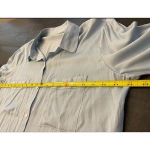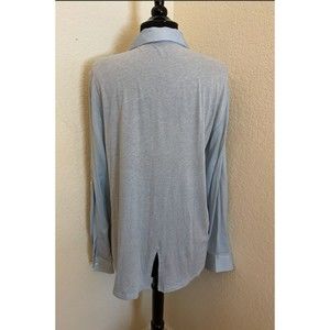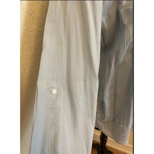 Great condition. Beautiful baby blue. See all pics for measurements. Buttons at elbow to roll up sleeves. Split hem in the back. Back of shirt is stretchy. Size Large.