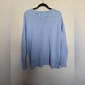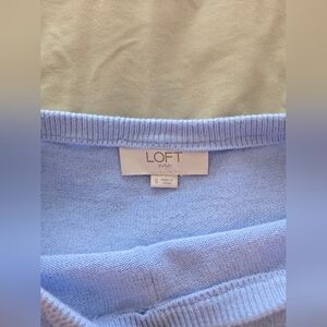 This LOFT Pullover Sweater in size Small is a stylish and versatile piece for women. The sweater features a Long Sleeve design with a Crew Neckline, making it perfect for casual occasions. Made from a comfortable Cotton Blend knit fabric in a light blue color, this lightweight sweater is machine washable for easy care. The pullover style with tunic length adds a trendy touch to this wardrobe staple.