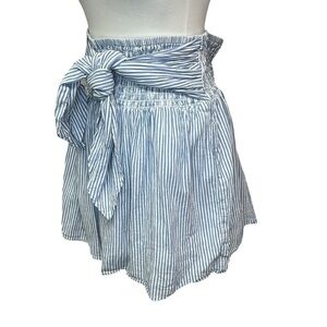 Stylish LOFT mini skirt with light blue stripes. Features a charming bow detail. Ideal for casual outings. This can be worn as a skirt or a strapless top.