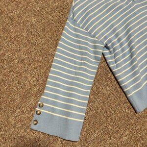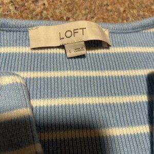 LOFT Light Blue and Cream Striped V-Neck Sweater