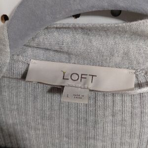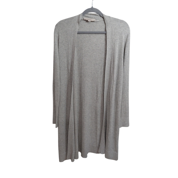 LOFT Light Gray Ribbed Open-Front Long Cardigan