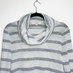LOFT Light Gray & White Striped Cowl Neck Plush Tunic Sweater Xsmall Women’s