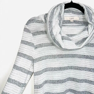 LOFT gray & white striped pullover plush sweater. In excellent condition! Slouchy cowl neckline. Long sleeves. Small slits on the hem. Soft plush material. Gray, light gray & white stripes. Size xsmall.