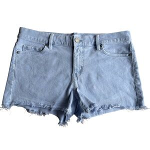 LOFT Light Wash Cut Off Denim Shorts – Frayed Hem, Stretchy, Size 8 (29)