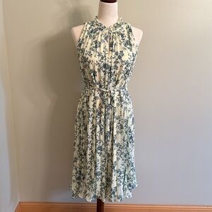 LOFT Light Yellow and Blue Floral Pleated Dress in XS/S