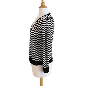 LOFT Lightweight Black & White Wavy Striped Open Front Cardigan Sweater, Size XS Petite