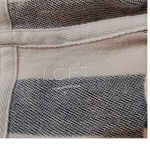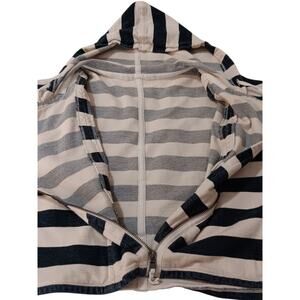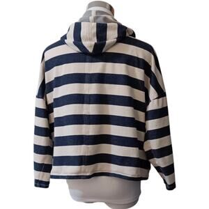 LOFT Lightweight Jacket S Moto Zip Hoodie Cotton Blue Cream Striped Coastal Trip