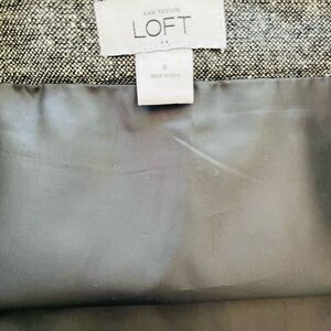 LOFT Lined Wool Blend gray& white tweed flower accent skirt size 6.