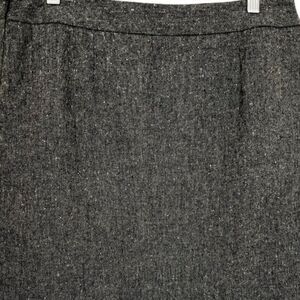 LOFT Lined Wool Blend gray& white tweed flower accent skirt size 6. Side hidden zipper, polyester, wool, and acrylic blend. Flowers on the left side are made from the same skirt material for an interesting look. Set in 1 .5” waistband. Approximate measurements are waist 16”, length from waist 18”.