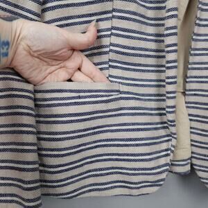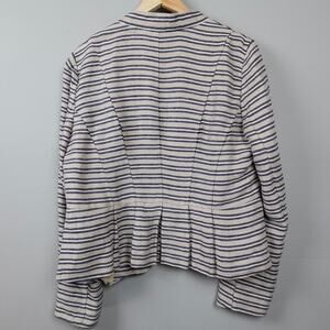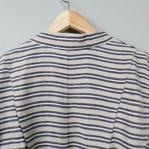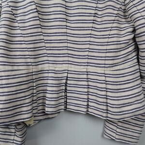 LOFT Linen Blend Striped Blazer Jacket Sz 12 Beige Navy Pleated Peplum Collarles