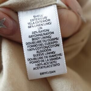 Loft Linen Blend Striped Blazer Jacket Sz 12 Beige Navy Pleated Peplum Collarless