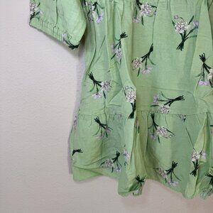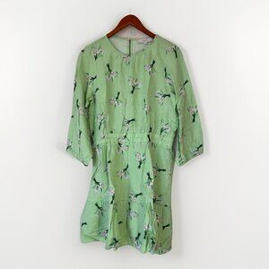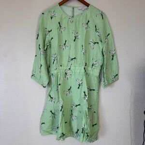 LOFT Linen Blend Tiered Balloon Sleeve Floral Dress in Pistacia Size Medium