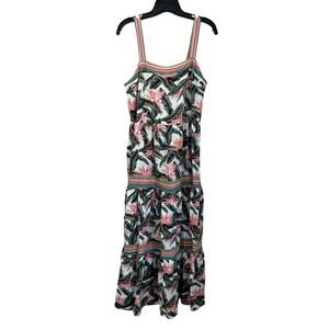 LOFT Linen Blend Tropical Floral Tiered Maxi Dress Size 6 Resort Vacation