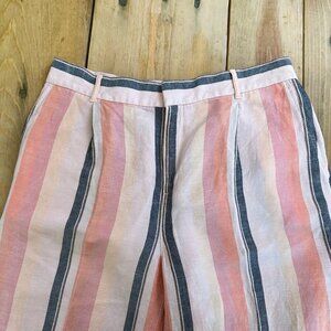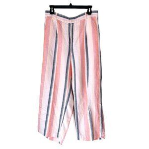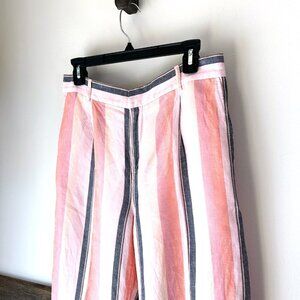 LOFT Linen Rayon Wide Leg Pants Striped M Pink Peach Gray